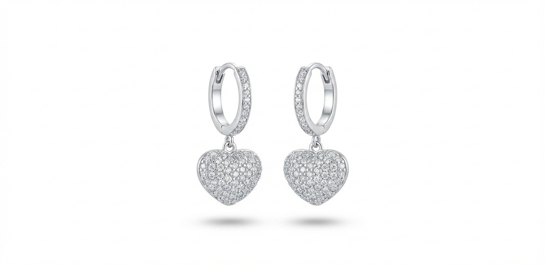 Brinco argola delicado em prata 925 com pingente de coração cravejado em zircônios brancos. Peça...