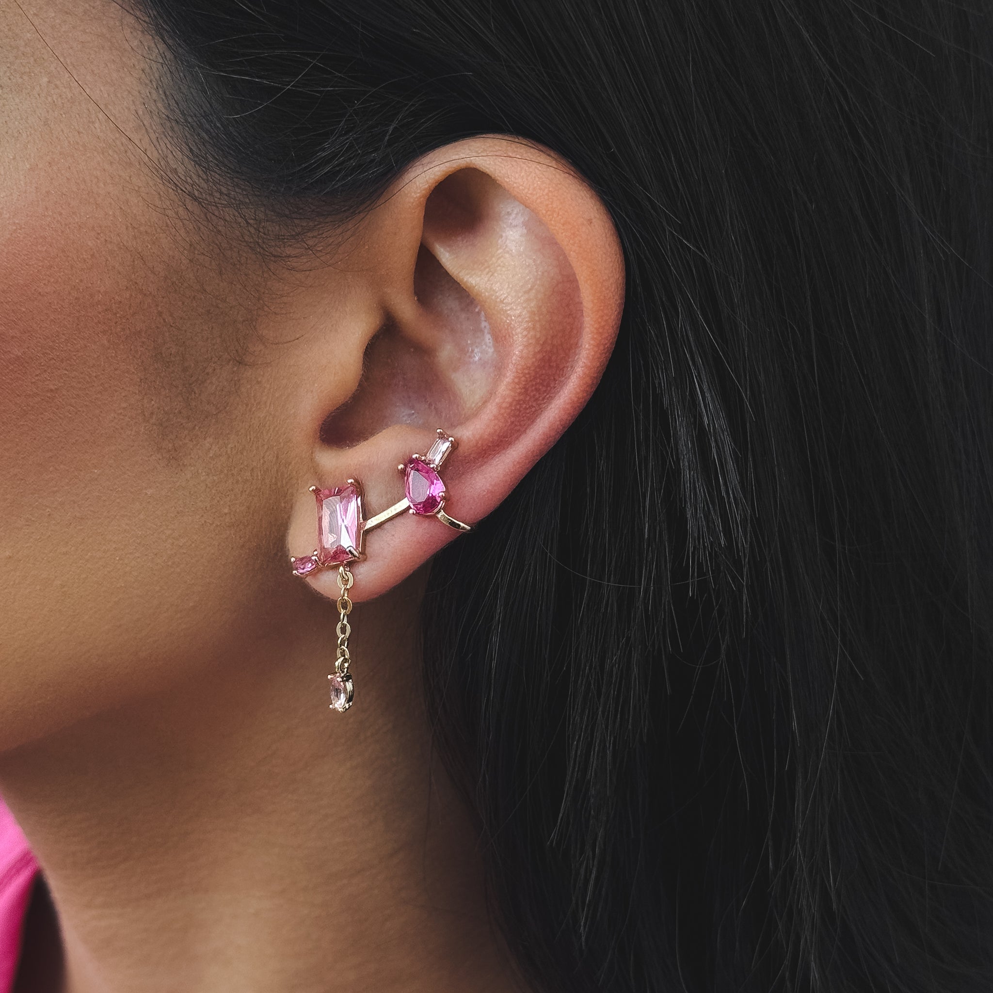 O Brinco Ear Cuff combina a modernidade do fake piercing com uma cortina de correntes...