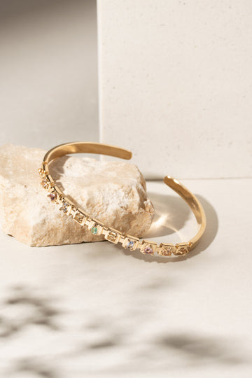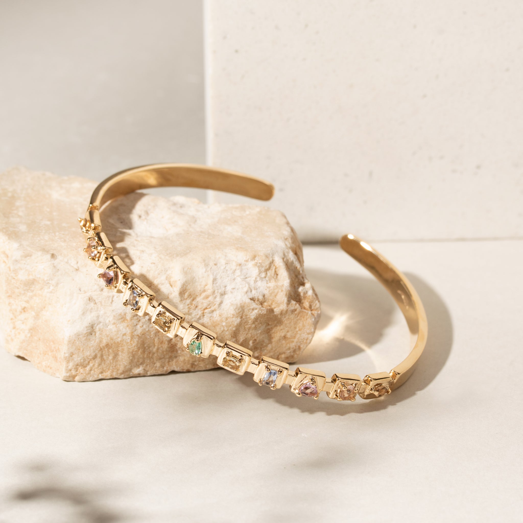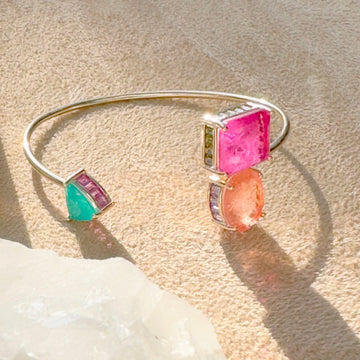 Pulseira Formas Cristais Morganita, Tanzanita e Esmeralda
