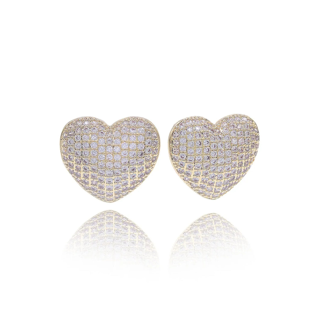 Brinco Coração Cravejado G Banhado a Ouro 18k