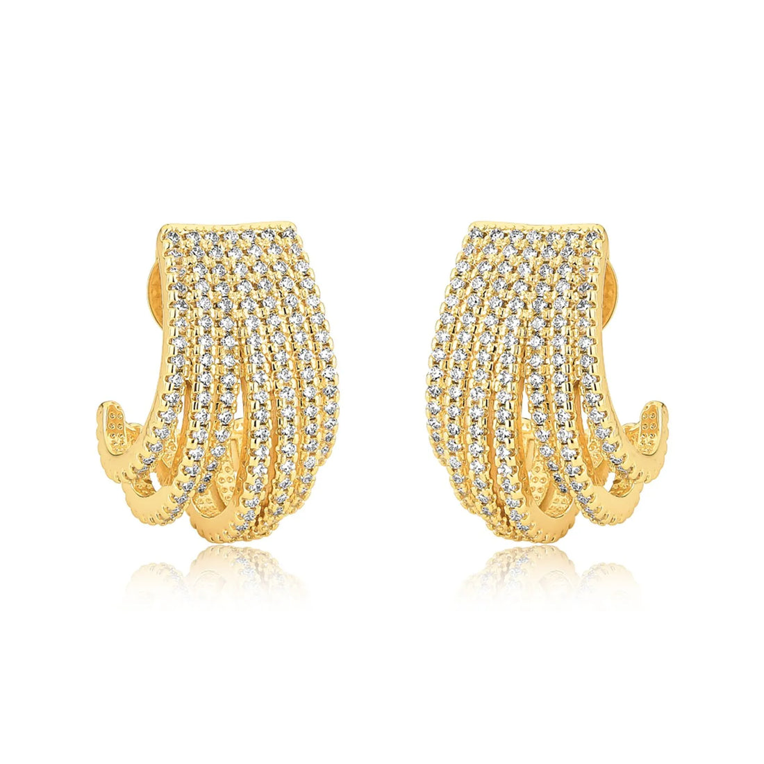 Brinco Fios Cravejados Banhado a Ouro 18k
